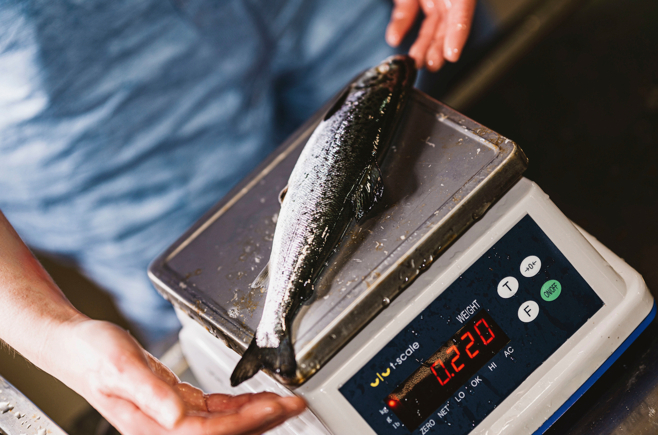When the salmon have reached the required size and weight for market, we transfer them from sea pen to processing facility – again, via a well-boat. This helps keep the adult salmon in their natural environment of seawater for as long as possible.