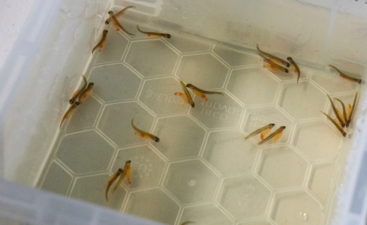 The fry are transferred out of the hatchery into growing tanks where they will begin to feed on the first of a series of specially formulated diets and will continue to grow for another eight to 10 weeks, progressing to parr stage.